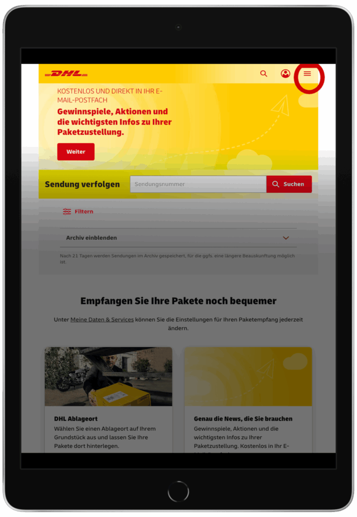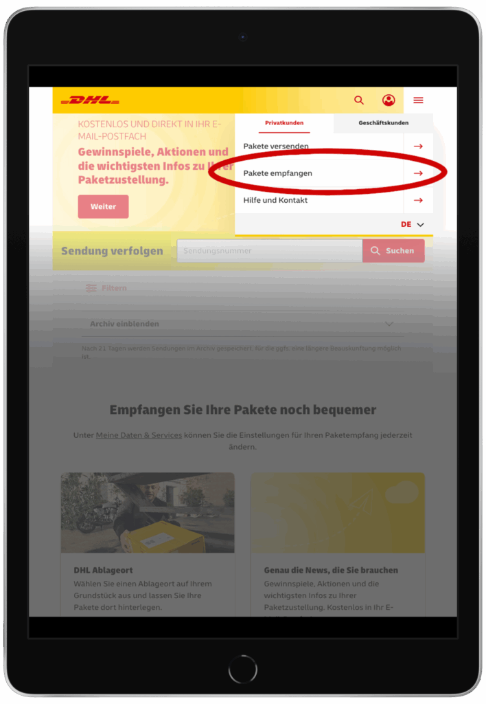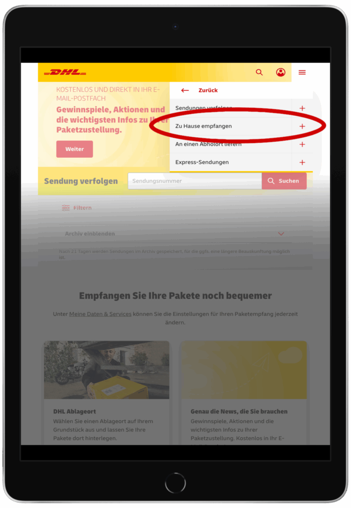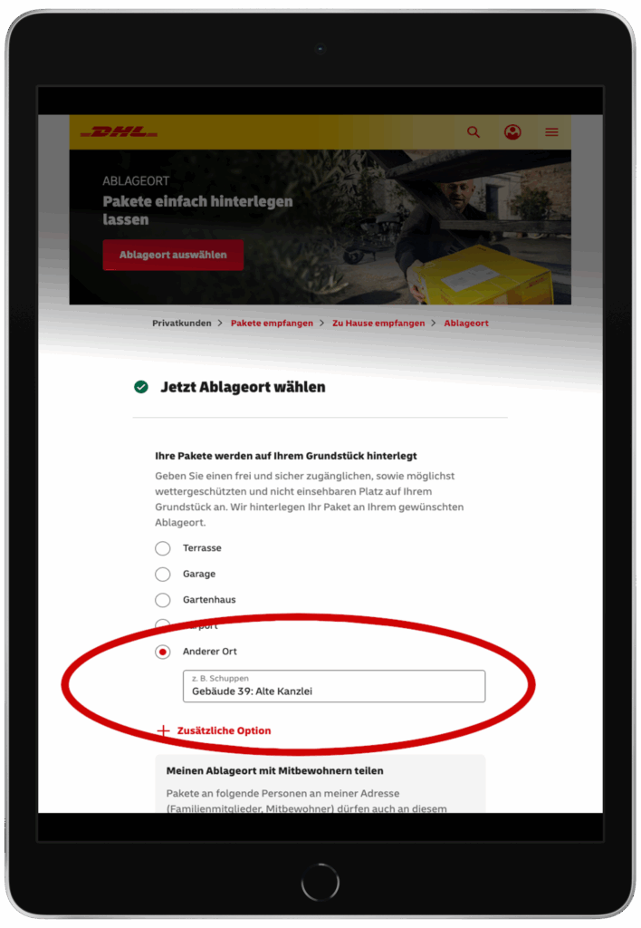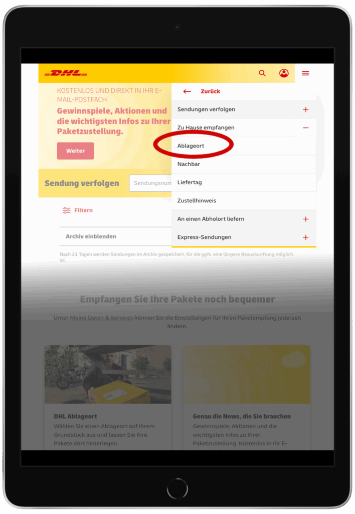 Abstellerlaubnis auf der Post & DHL-Webseite ändern